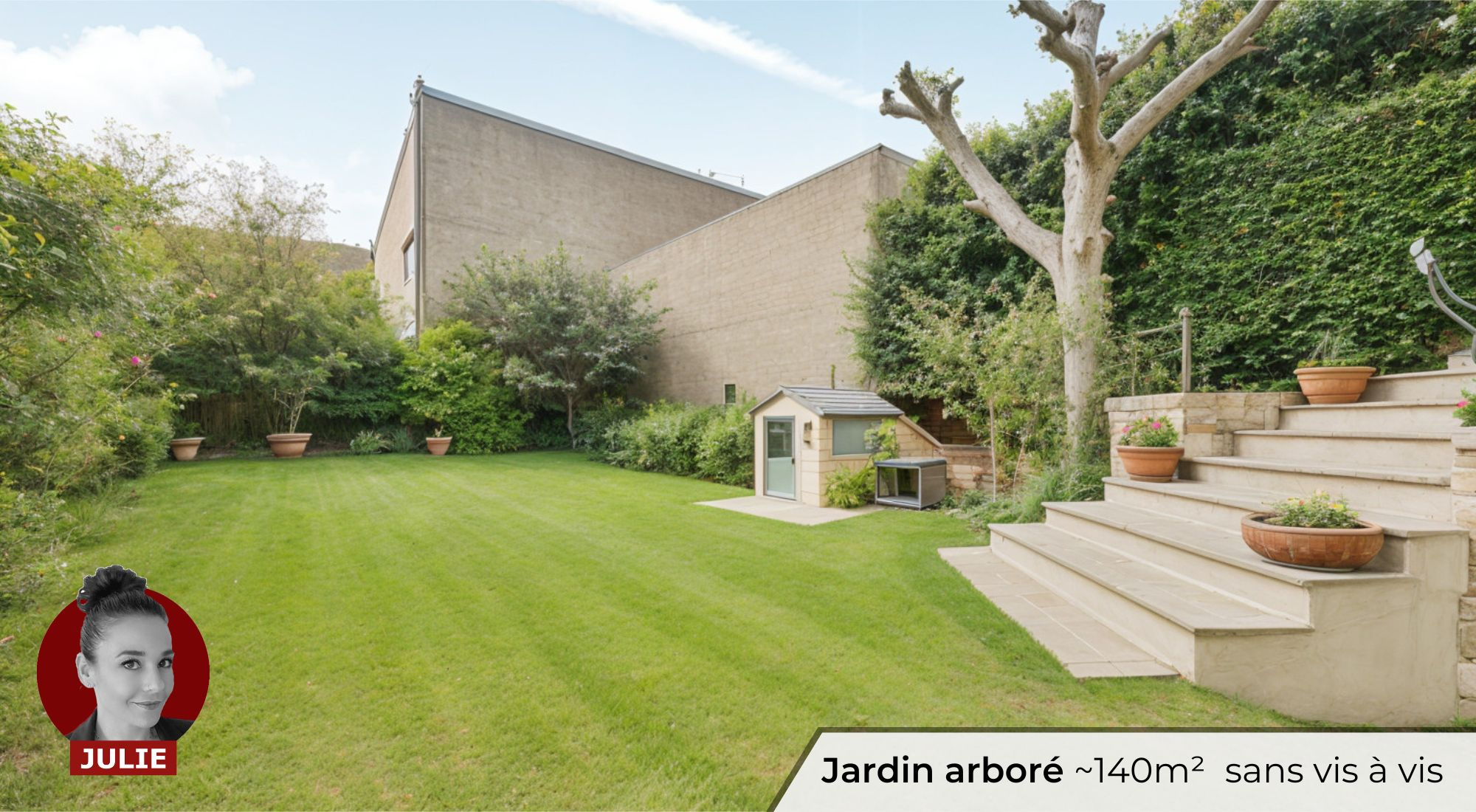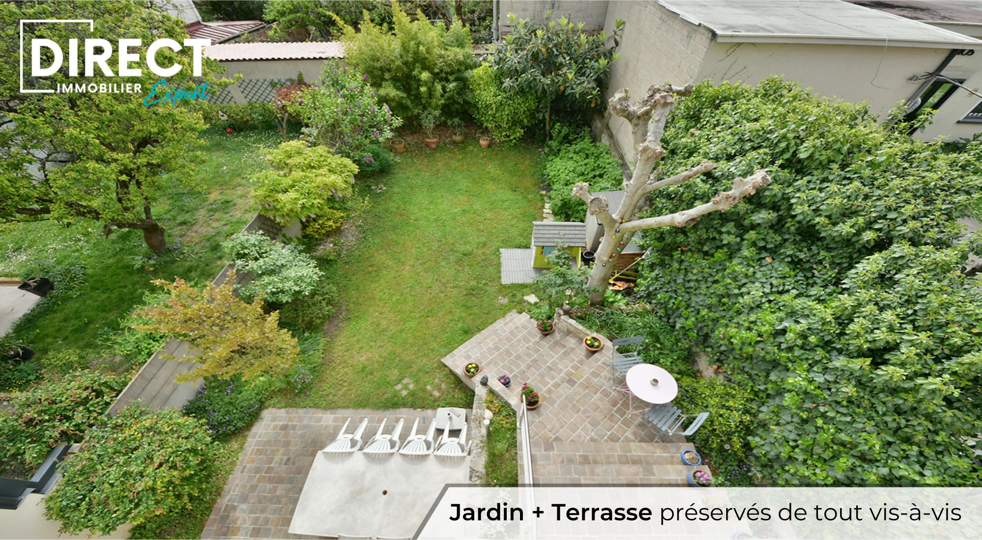 • JARDIN et TERRASSE arboré à préservés des regards EXPOSE SUD