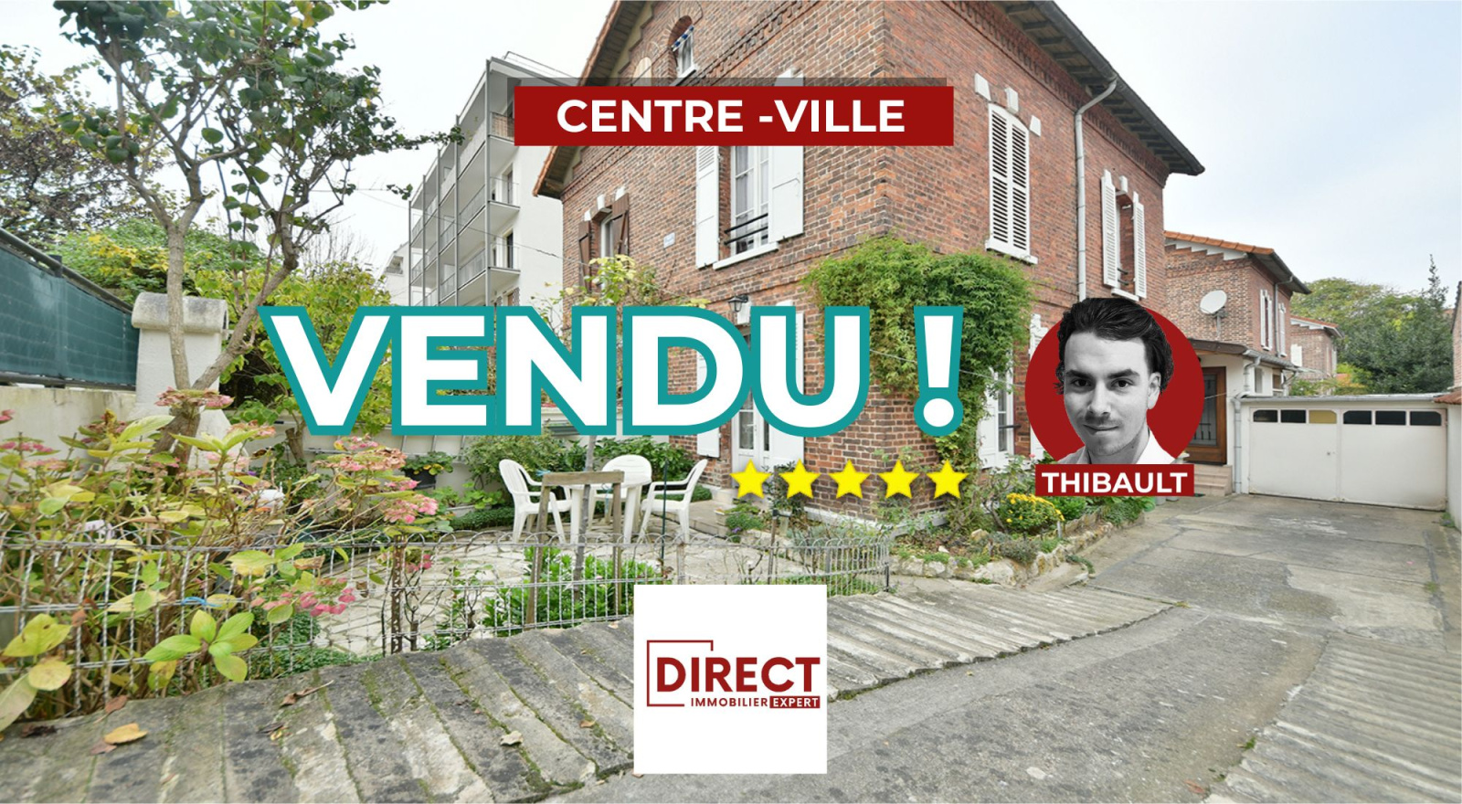 CENTRE-VILLE : MAISON 5P + TERRASSE + GARAGE