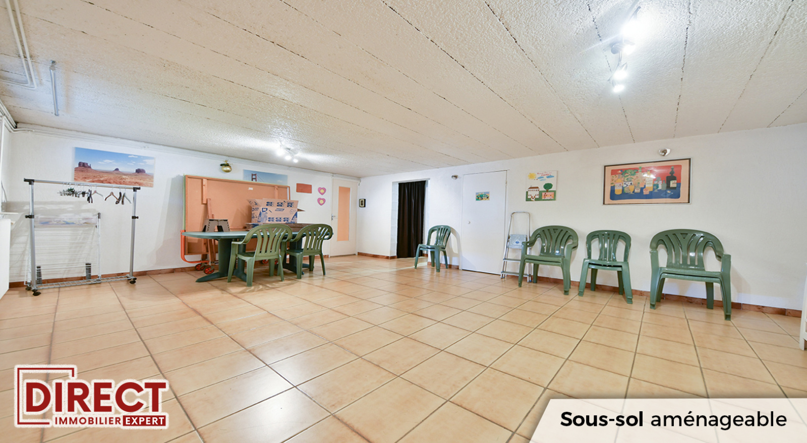- une GRANDE PIECE carrelée et chauffée de près de 40m² avec un espace BUANDERIE