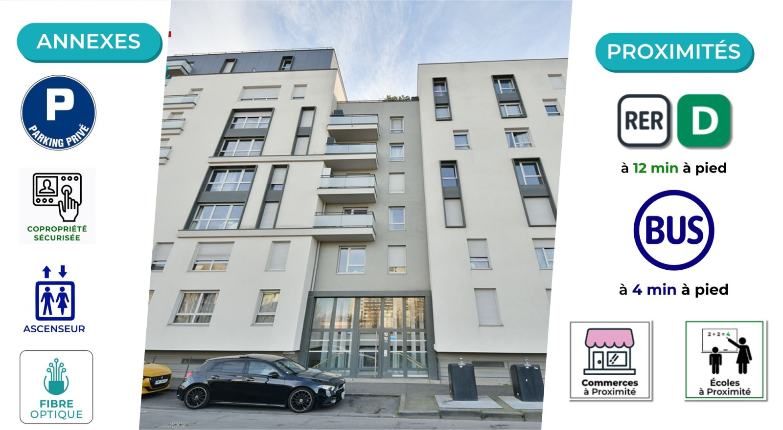 À seulement 10 MINUTES du RER D et de la FUTURE ligne 15, ce bien bénéficie d’un emplacement stratégique en plein développement. La copropriété, de STANDING, SÉCURISÉE et TRÈS BIEN ENTRETENUE, offre un cadre de vie agréable à proximité des commerces et transports.