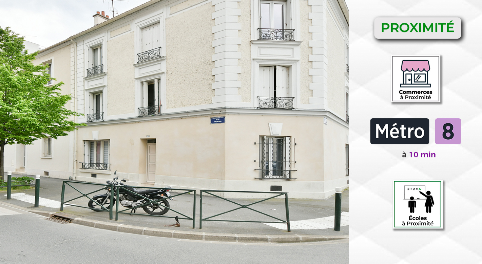 À 10 minutes du Métro Ligne 8 - École Vétérinaire, il est également à proximité des commerces et des transports, facilitant votre quotidien.