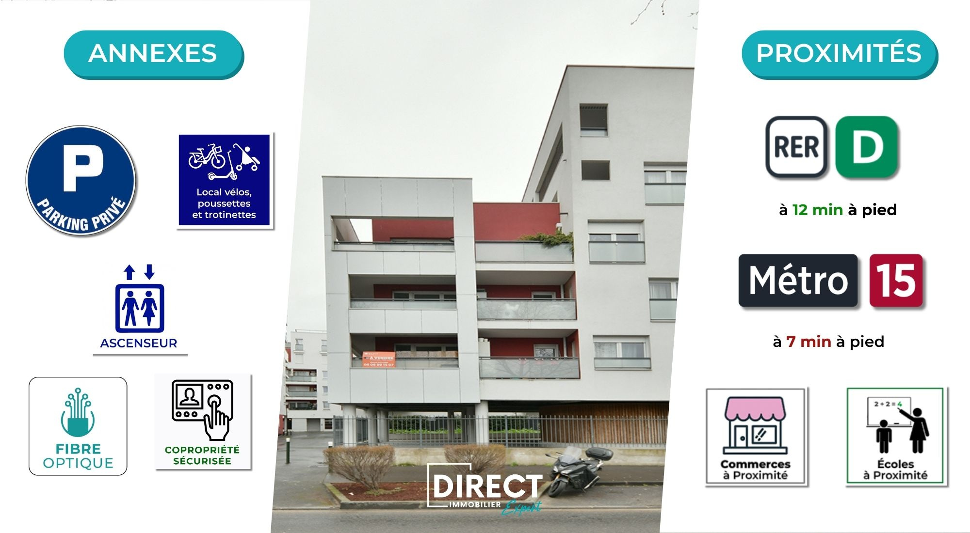 À seulement 11 MINUTES du RER D et 5 MINUTES de la future ligne 15, à quelques pas des COMMERCES, ÉCOLES et PARC, ce bien bénéficie d’un environnement pratique et recherché, idéal pour une vie citadine confortable et connectée.