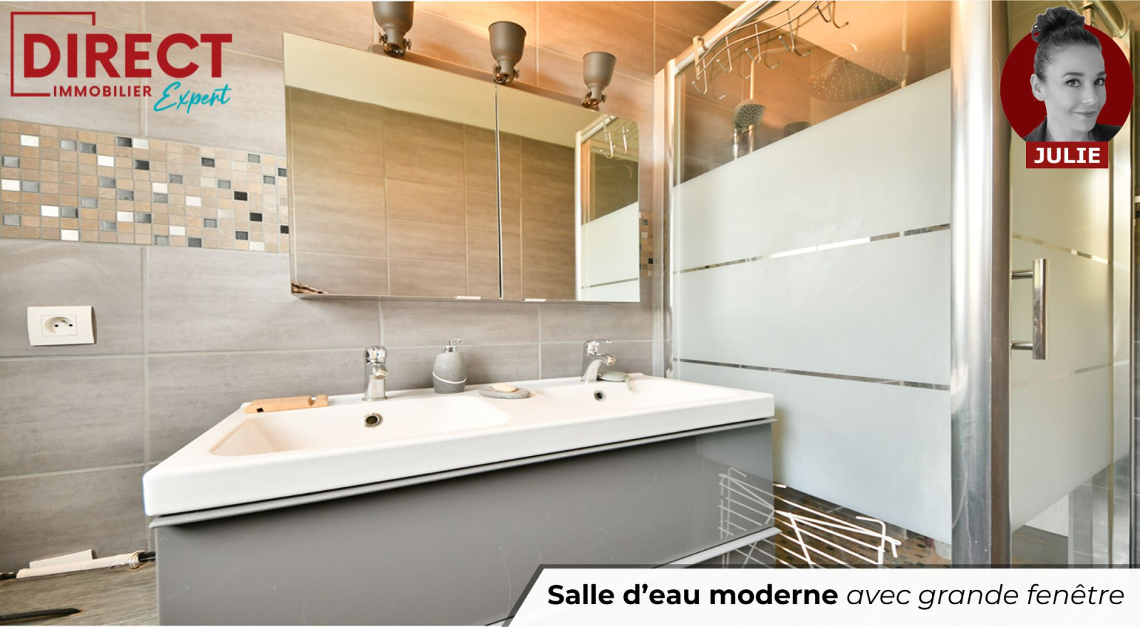 Une salle d’eau moderne avec fenêtre ainsi qu’un WC séparé complètent ce bien fonctionnel.