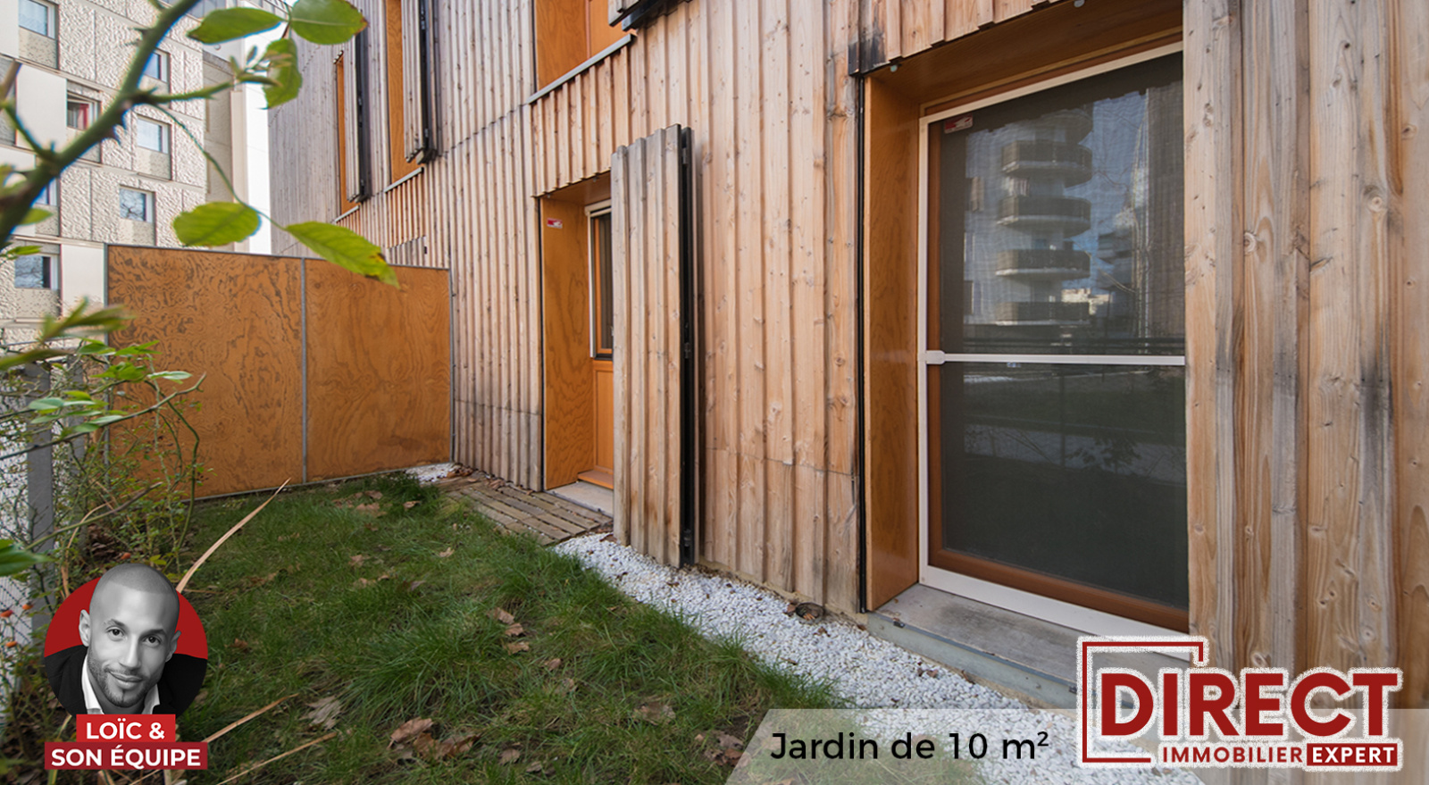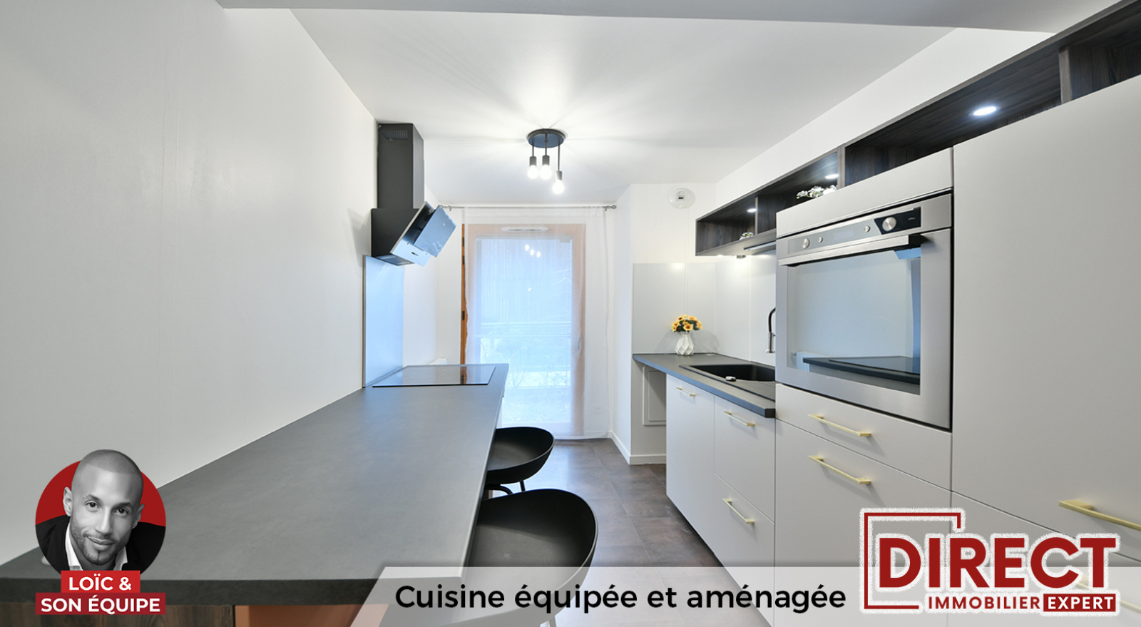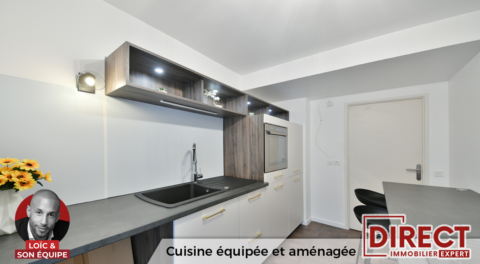 - d'une cuisine entièrement équipée et aménagée, avec accès à un JARDIN PRIVATIF de 10m²
