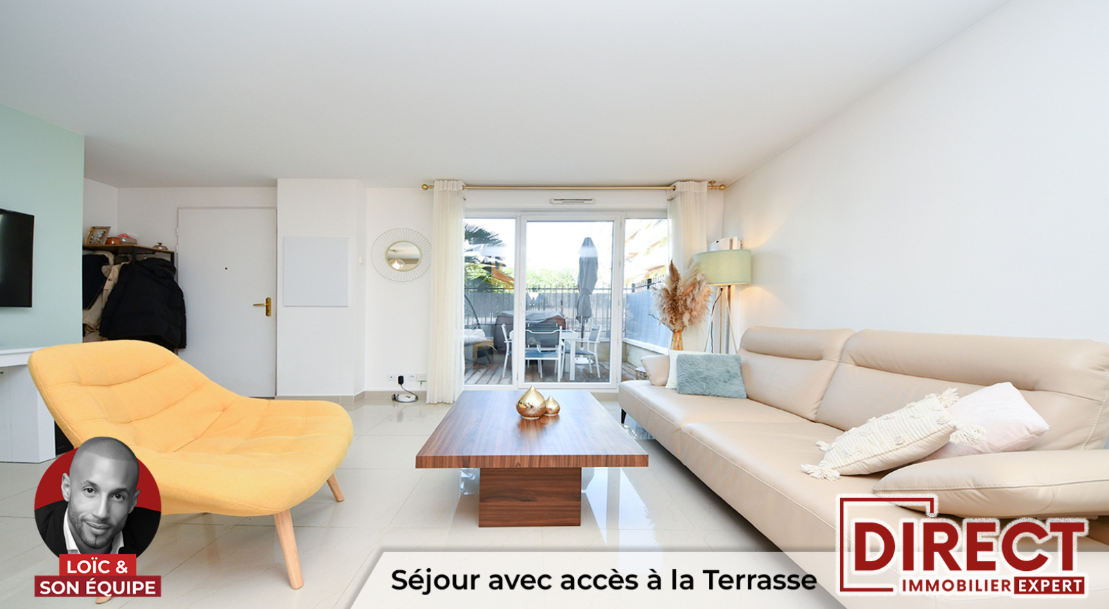 - d’un espace séjour spacieux et chaleureux, avec accès direct à la TERRASSE