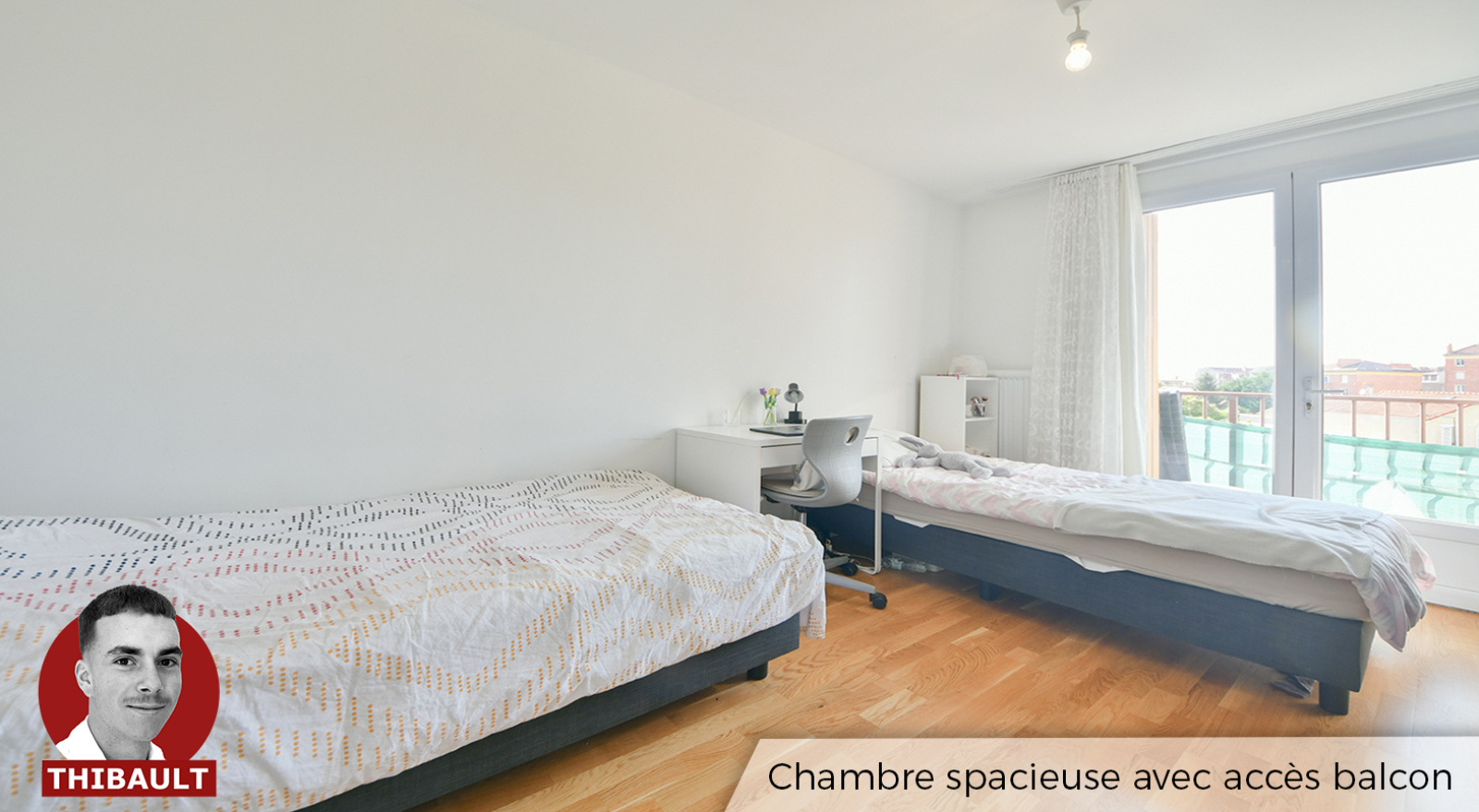 - Deux chambres spacieuses : Chaque chambre bénéficie d'une belle luminosité et donne un accès direct au second balcon, apportant une touche d'extérieur supplémentaire.