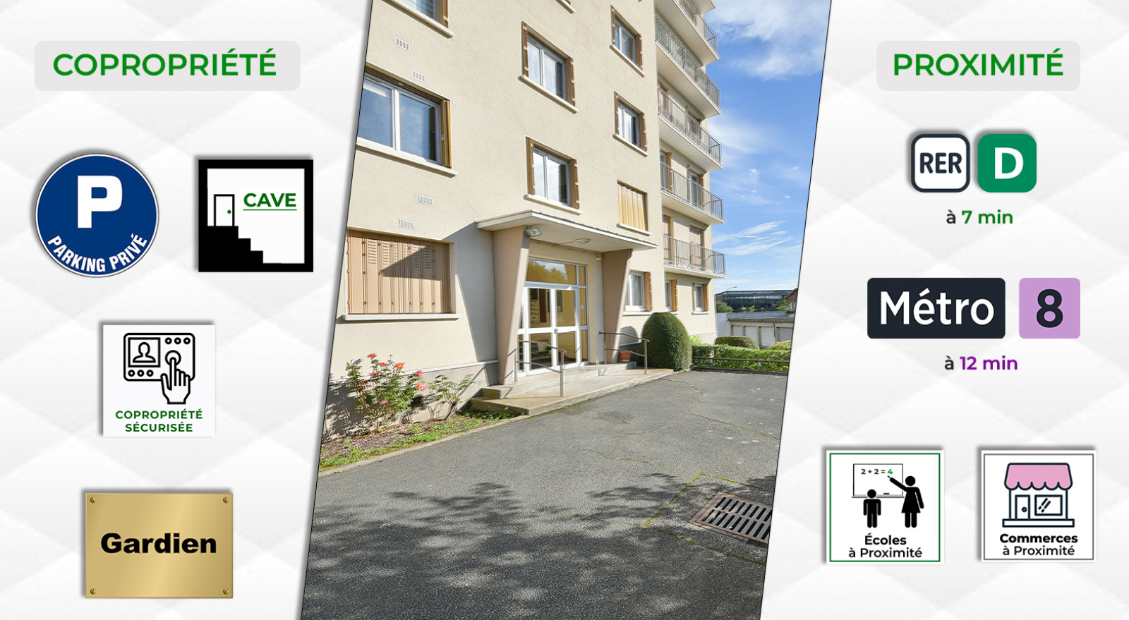- À 5 minutes à pied du RER D (gare principale), facilitant vos déplacements quotidiens.