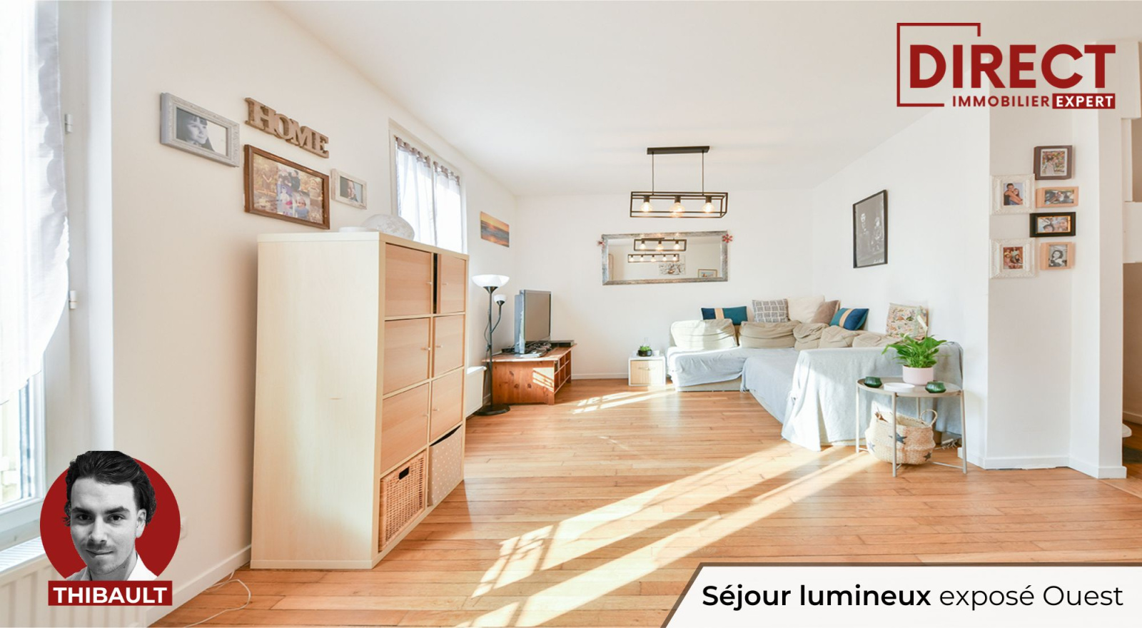 - Une entrée ouvrant sur un séjour/salle à manger lumineux, exposé Ouest