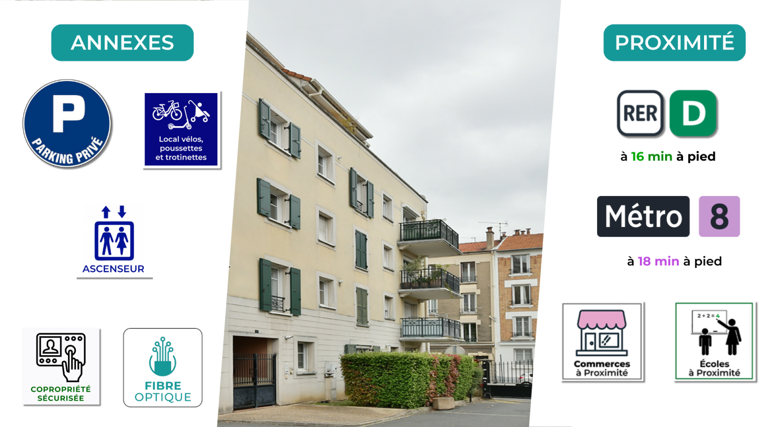 • Métro Ligne 8 à 18 min à pied