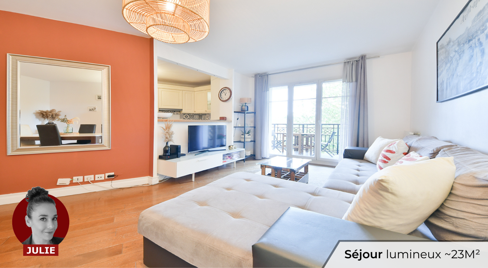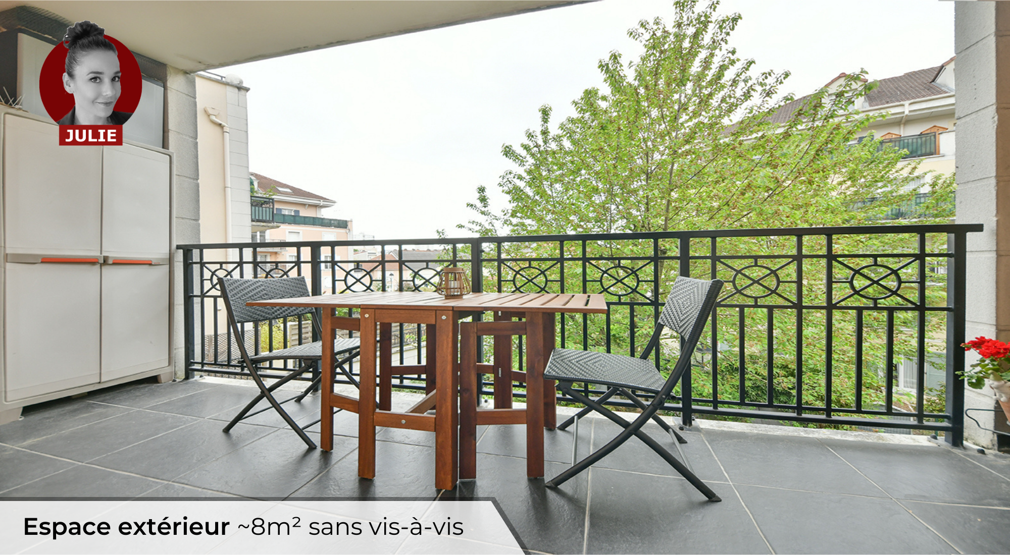 • Un SÉJOUR LUMINEUX donnant sur un ESPACE EXTÉRIEUR au CALME, exposé plein SUD et SANS VIS-À-VIS