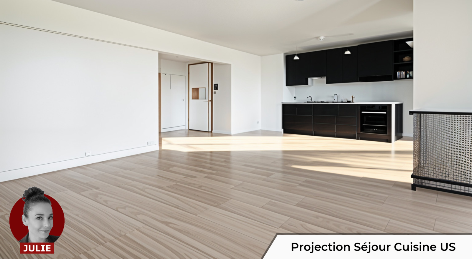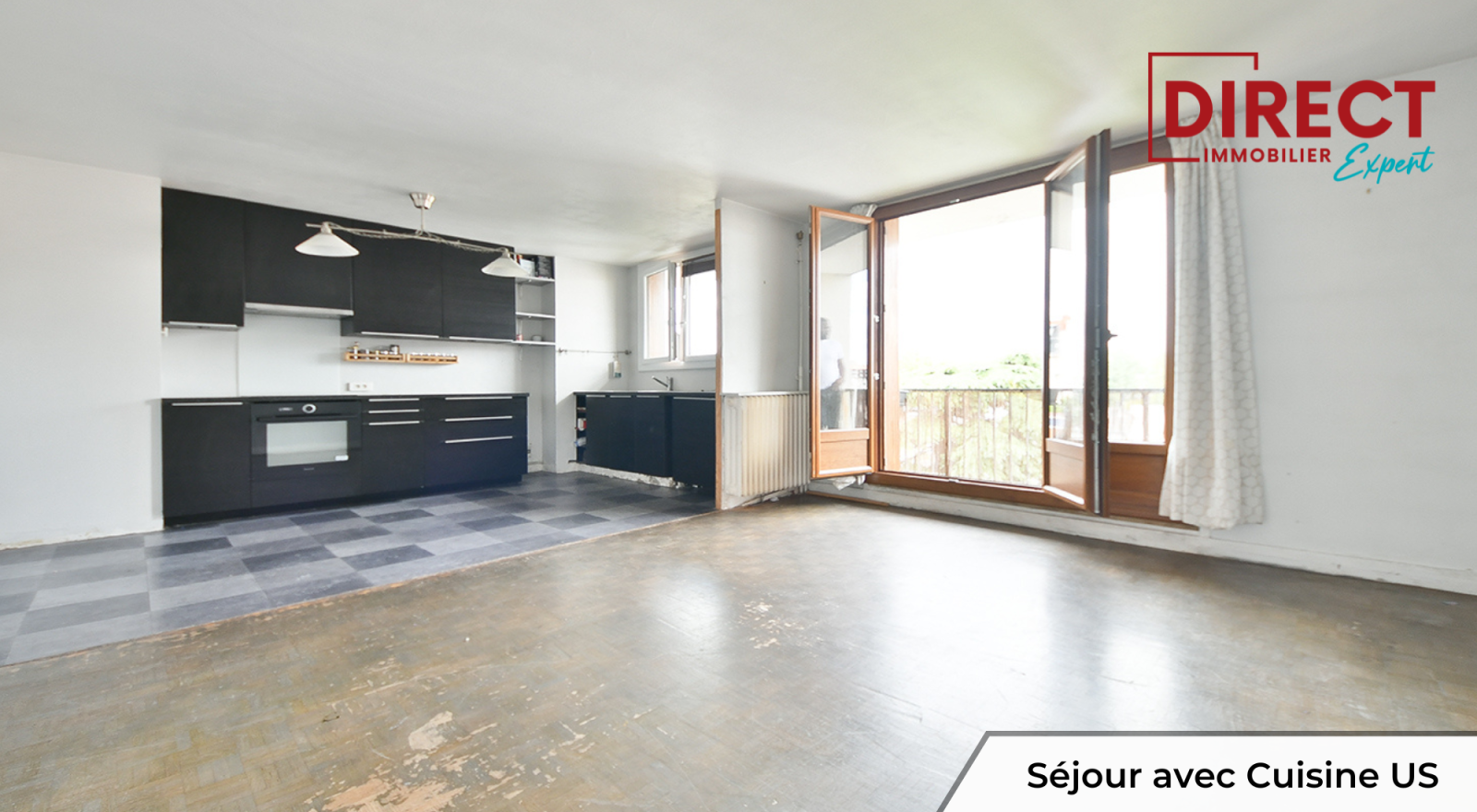 Une pièce de vie avec cuisine ouverte donnant sur un balcon exposé Est ????