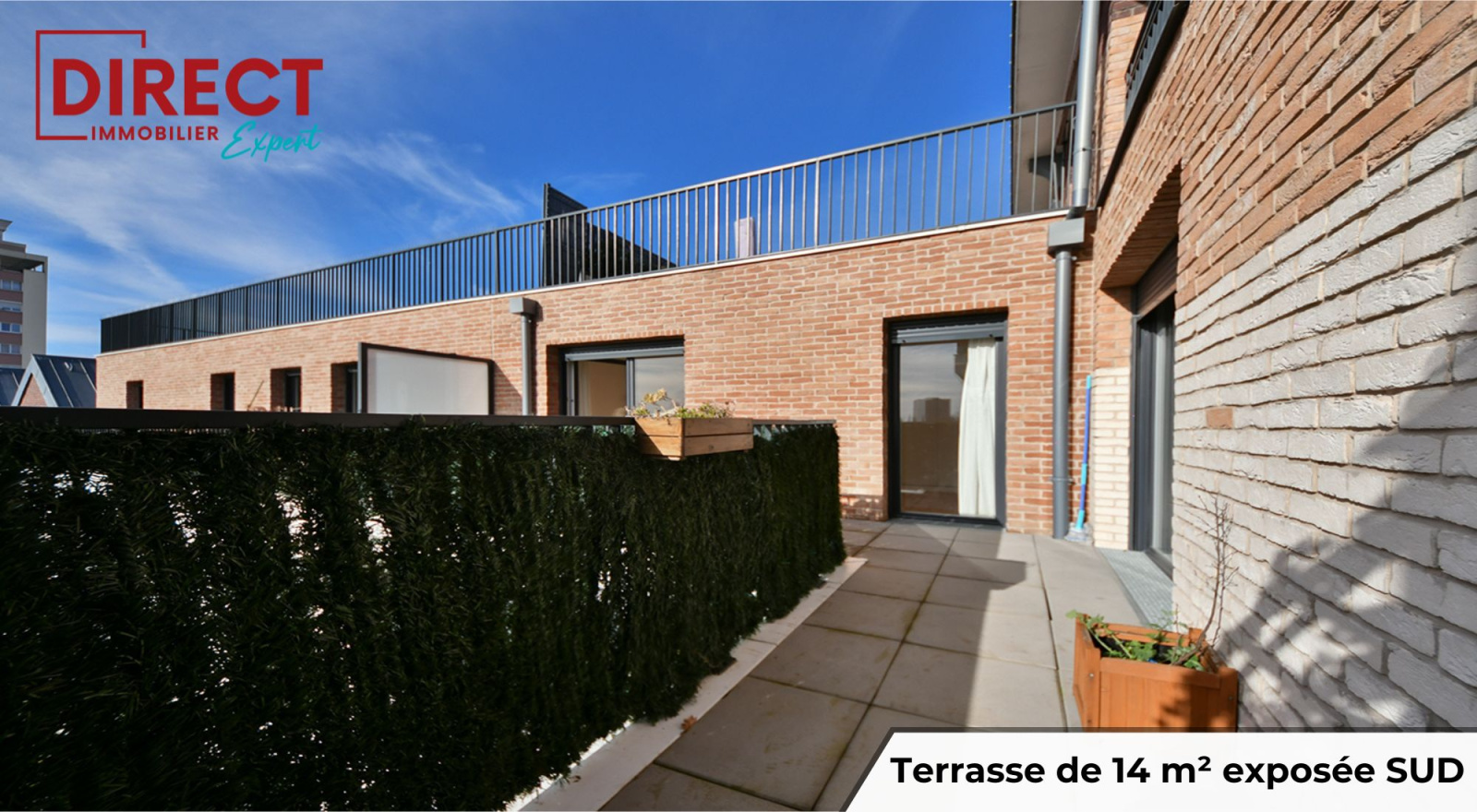 TERRASSE DE 14 m² exposée SUD, accessible depuis toutes les pièces