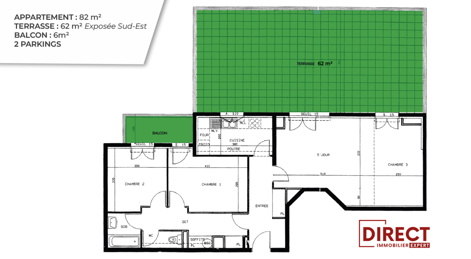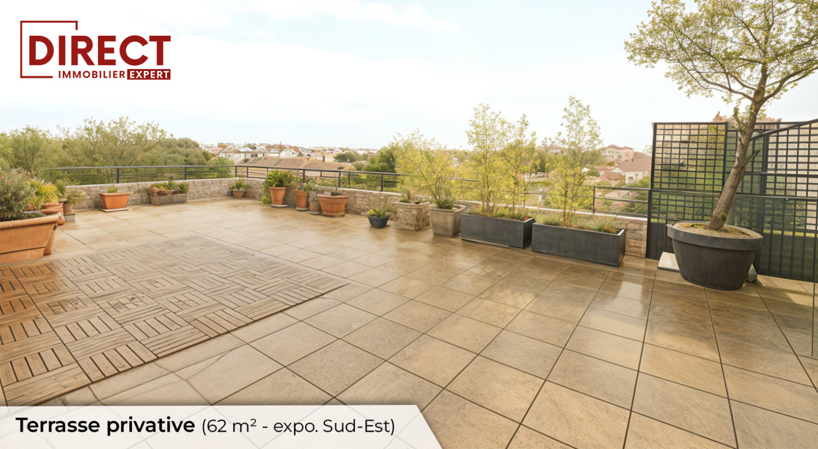 - Une TERRASSE PRIVATIVE de 62 m², un véritable atout pour profiter du soleil tout au long de l'année, organiser des repas en extérieur ou simplement se détendre en plein air.