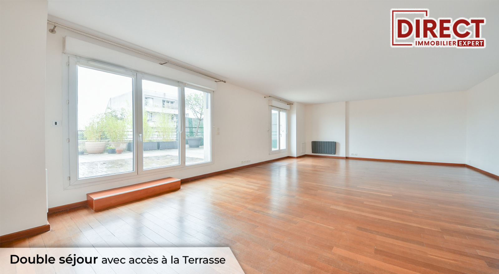 et offrant un accès direct à une TERRASSE IMMENSE de 62 m² exposée plein Sud, idéale pour vos moments de détente ou pour recevoir.