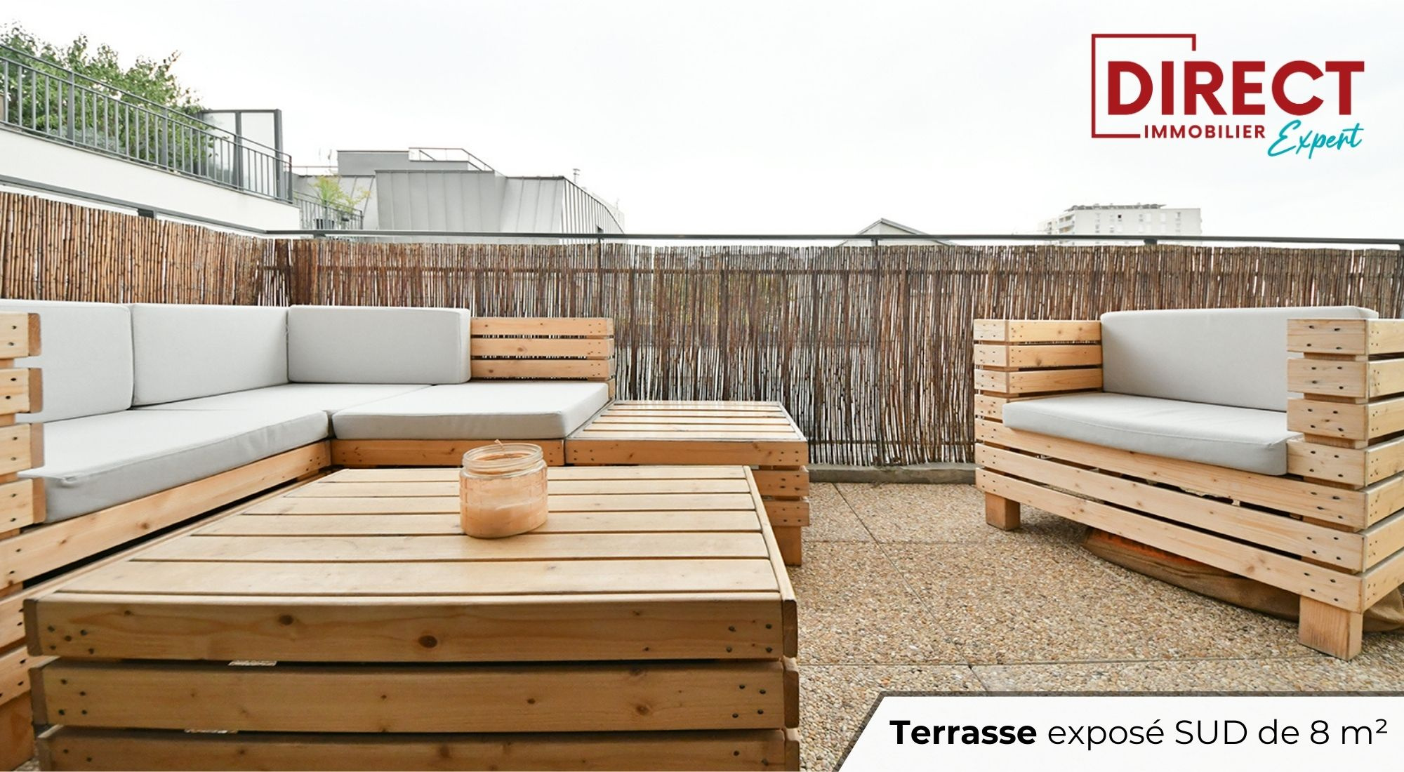 ? Un séjour lumineux avec accès direct à une TERRASSE DE 8 M², orientée plein Sud et SANS VIS-À-VIS
