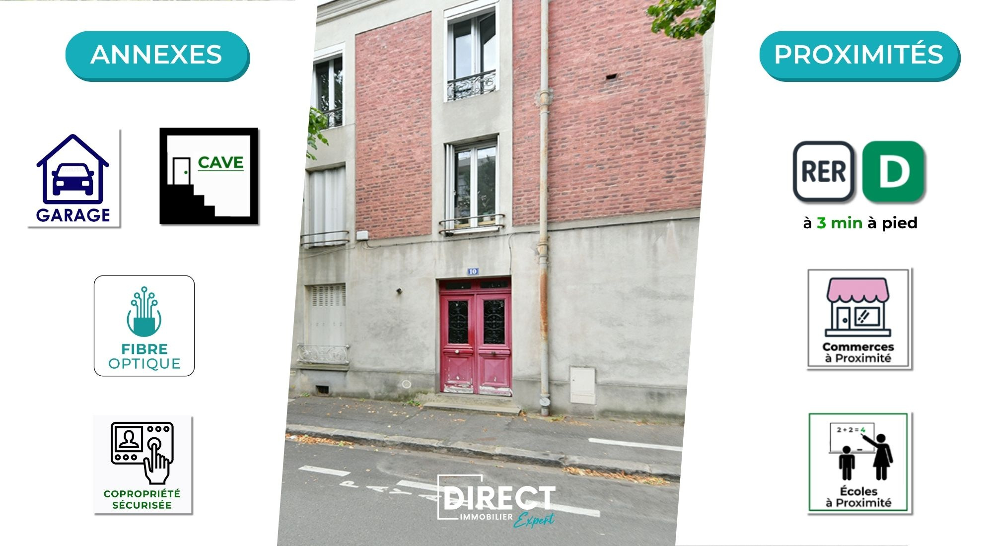 Ce bien bénéficie d’un emplacement stratégique, dans un environnement calme et résidentiel à seulement 3 minutes à pied du RER D (Maisons-Alfort – Alfortville).