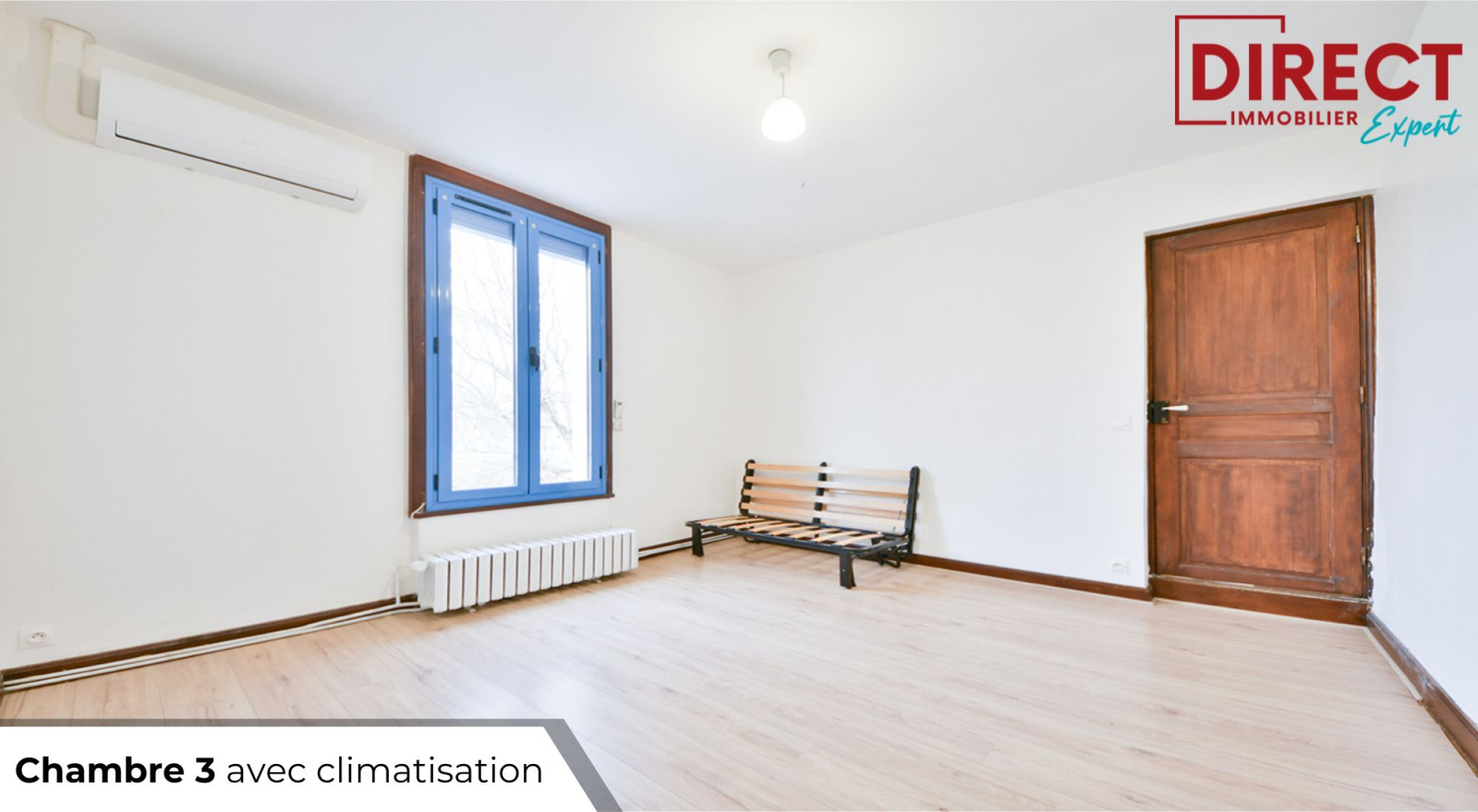 À l’étage : TROIS BELLES CHAMBRES climatisées, une SALLE DE BAINS et un WC séparé
