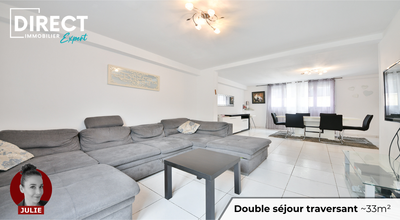 o Un DOUBLE SÉJOUR lumineux de 33 m² ouvrant directement sur une TERRASSE de 30 m² et un JARDIN de 130 m² sans vis-à-vis