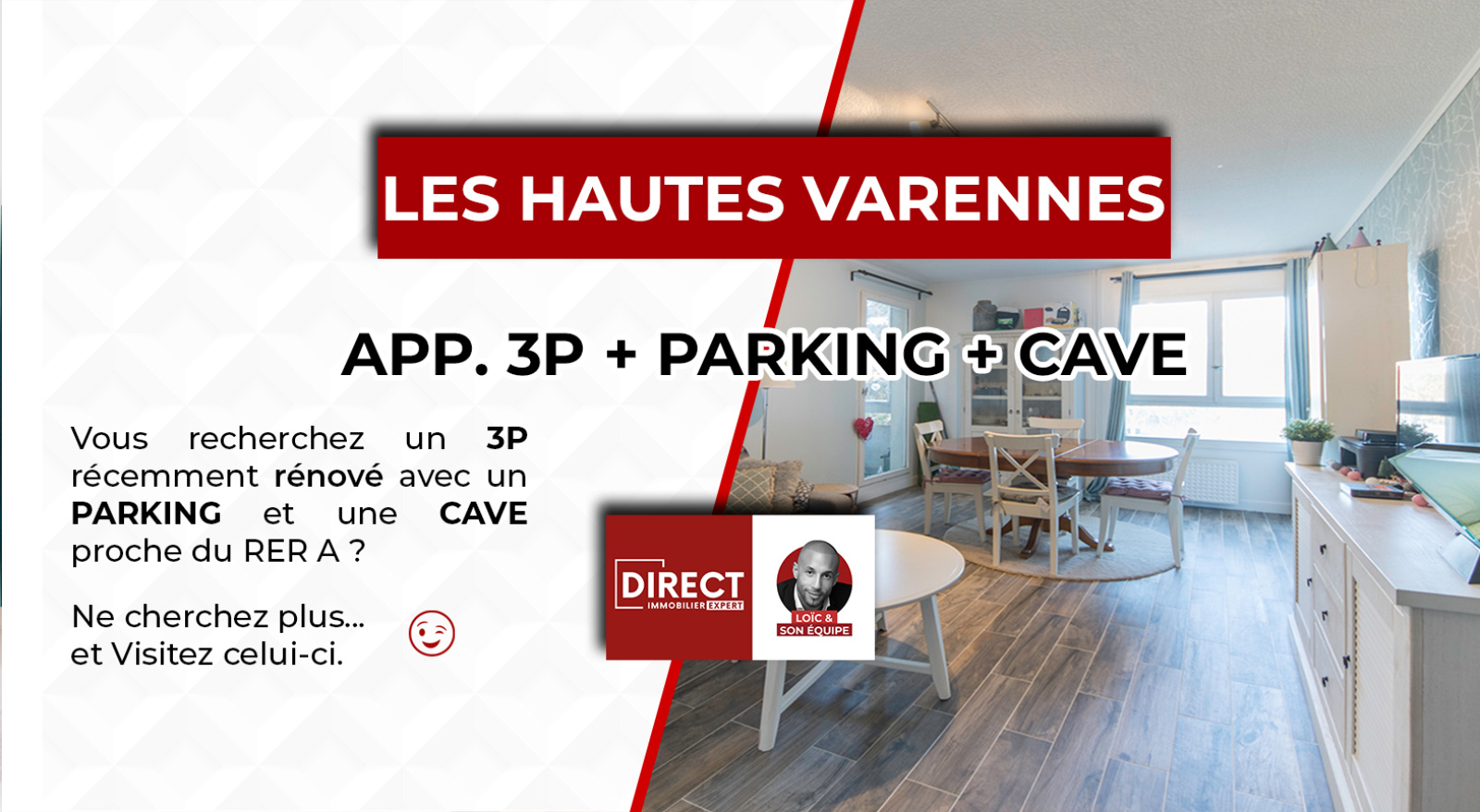 Dans le quartier les Hautes Varennes, à proximité du RER A, des commerces, des medecins et des écoles. Vous serez charmés par cet appartement de 3 pièces principales de 67m² environ. Il se compose de: entrée, séjour avec accès à la LOGGIA (sans vis-à-vis), cuisine intégralement équipée et aménagée, deux chambres, salle d'eau, dégagement, rangements et WC séparés. A noter que ce bien est complété par un PARKING PRIVATIF en SOUS-SOL et une CAVE.
