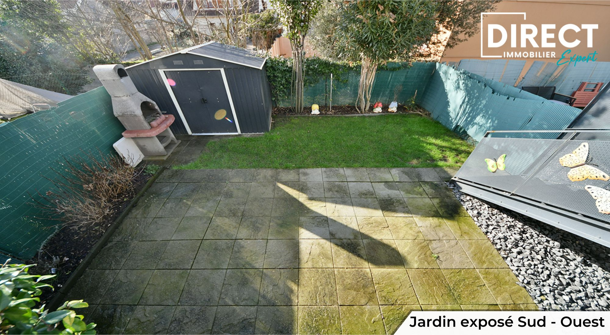 Un jardin de 40m² exposé Sud Ouest idéal pour profiter du Soleil