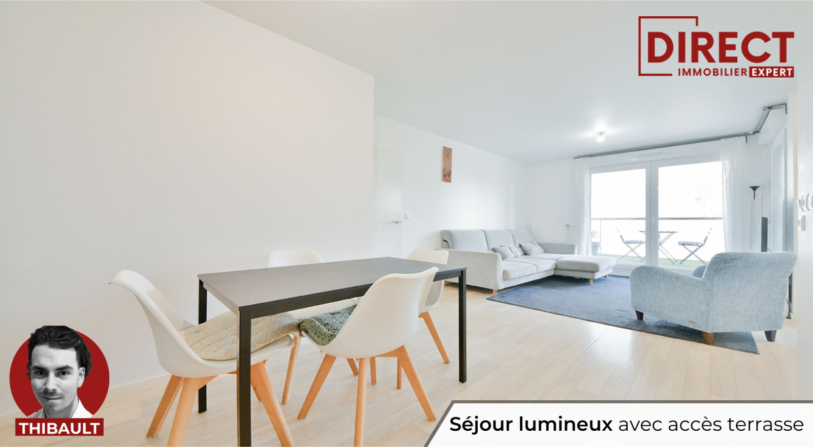 • Séjour/Salle à manger SPACIEUX avec CUISINE OUVERTE et accès direct à la TERRASSE de 12 m²