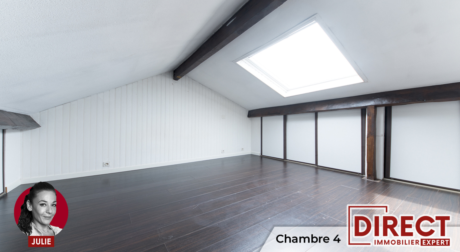 Les combles ont été astucieusement aménagés en une chambre spacieuse de 22m², agrémentée de nombreux rangements pour un espace aussi pratique que confortable.