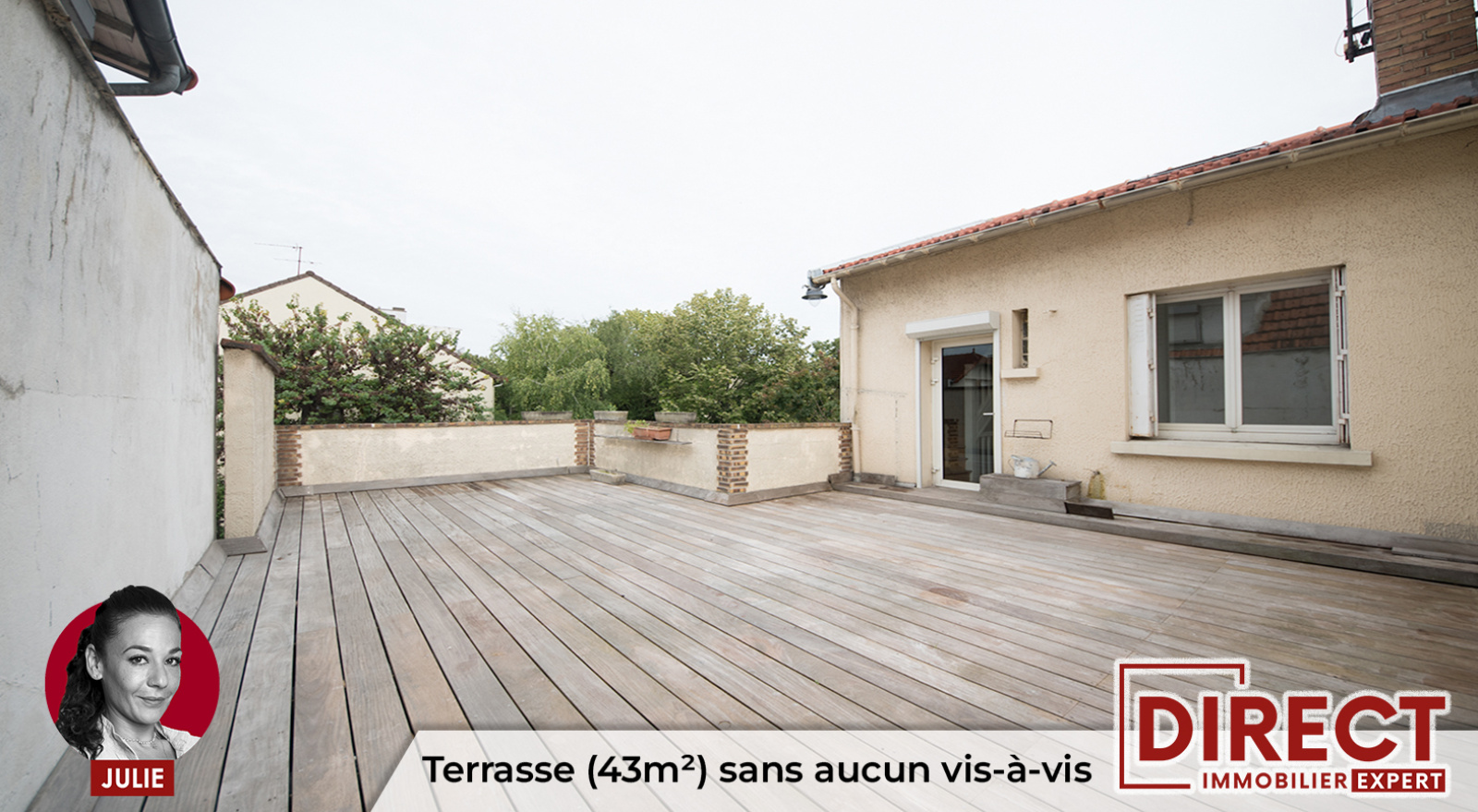 Un accès à une magnifique TERRASSE de 43m², au potentiel remarquable, prête à être agencée, offrant intimité et sérénité.